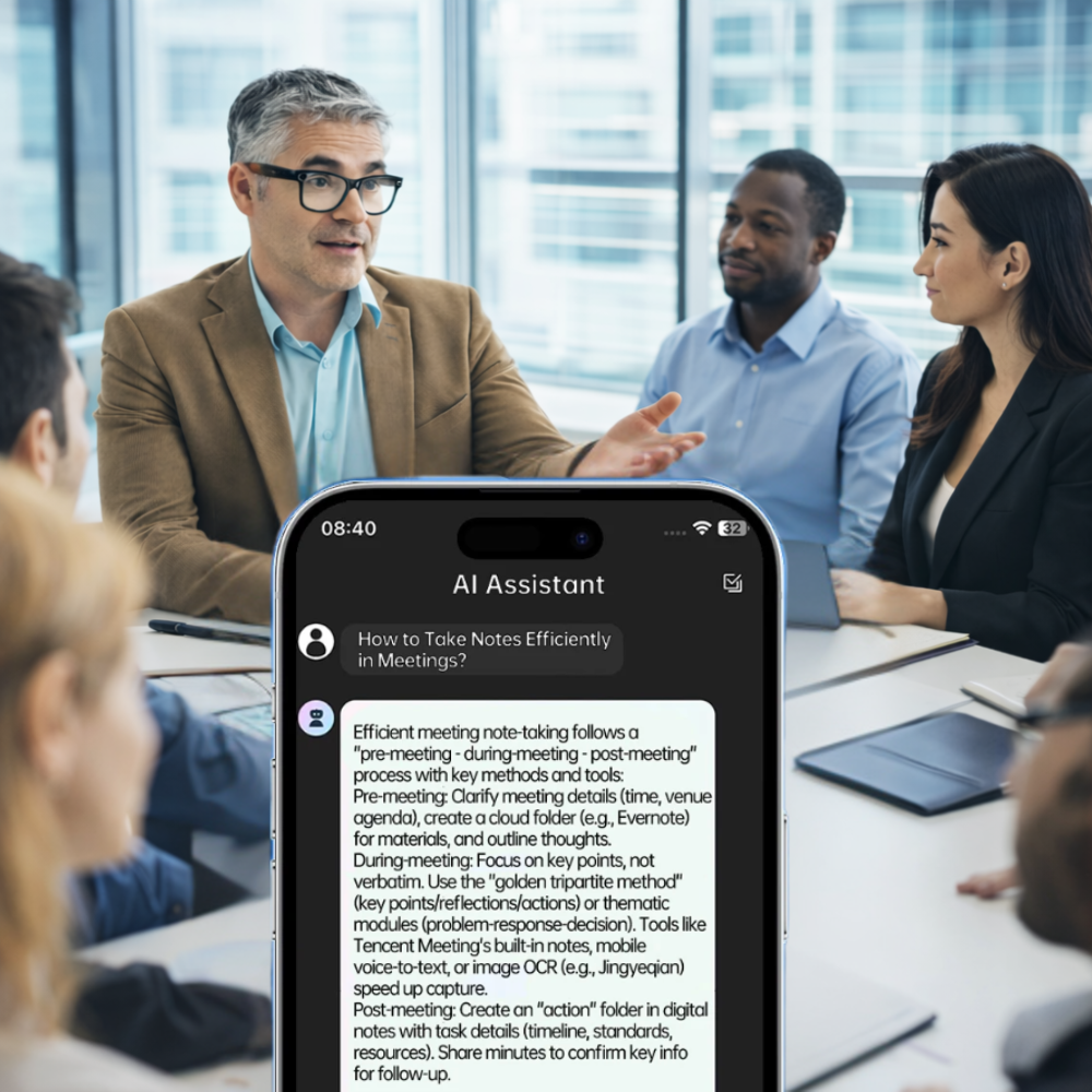 Aurexana Capture 2 Smart AI Sunglasses are AI powered smart glasses designed for modern professionals to support productivity and help reduce eye strain during long screen times. Equipped with blue light filtering lenses, they provide added visual comfort for extended hours spent on laptops, tablets and smartphones, making them suitable for office work, meetings and daily digital tasks. The built-in audio recording function allows you to record meetings, discussions and key talking points hands-free. This makes it easier to review notes, confirm action items and keep accurate meeting minutes without constantly looking down at your phone. Recorded audio files can be transferred seamlessly to your mobile device via WiFi for organized storage, quick reference and efficient follow-up. These smart glasses feature a built-in voice assistant and an app that lets you take photos, ask questions and manage tasks effectively. Real-time conversational translation supports smoother communication across different languages during business meetings and professional interactions. Active noise reduction enhances call clarity in busy environments, while Bluetooth connectivity allows effortless hands-free calling. Open-ear audio playback keeps you aware of your surroundings during meetings and it allows you to play music without disturbing anyone. It can lasts up to 12 hours of continuous music playback and with its IP65 water resistance feature, it delivers dependable performance throughout extended workdays.
