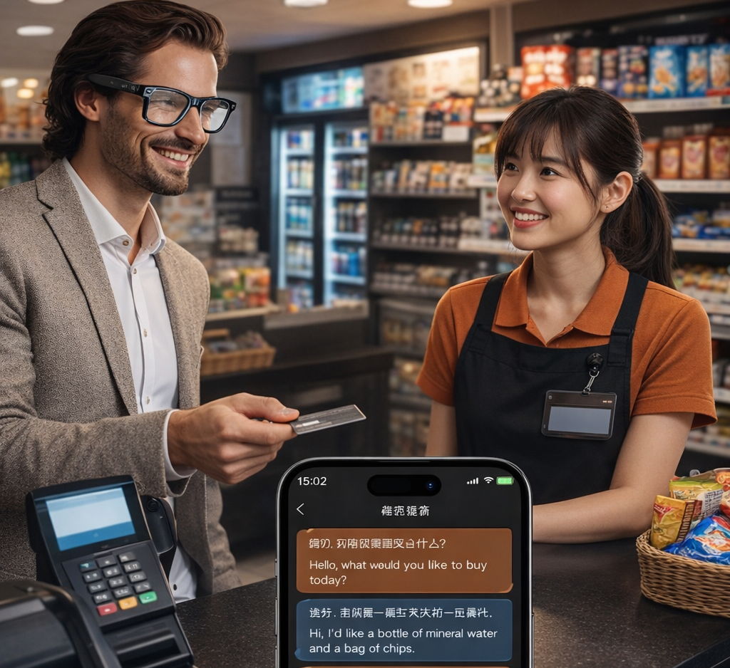 The spoken language is captured by the built-in microphones and processed through AI-powered translation software on the connected device. The translated response is then delivered through the open-ear audio speakers in near real time.